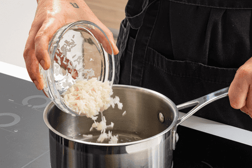 Рис промыть, залить водой в соотношении 1:1, довести до кипения, накрыть крышкой и варить на медленном огне около 15 минут, до готовности. Готовому рису дать полностью остыть.