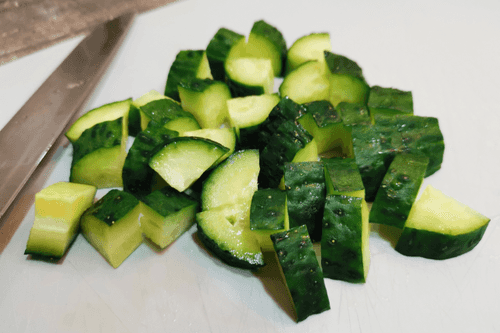 Некрупно нарезать огурец.