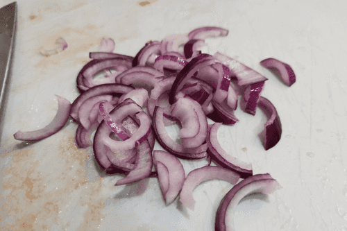 Нарезать лук полукольцами.