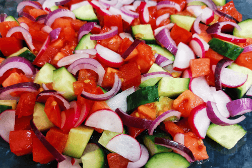 Объединить все овощи в миске.