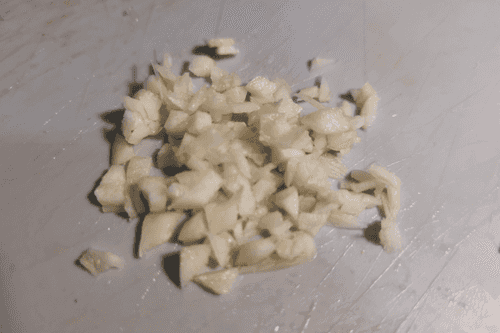 Мелко нарезать чеснок.
