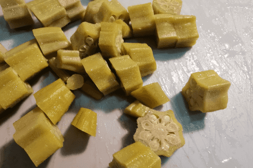 Некрупно нарезать бамию.