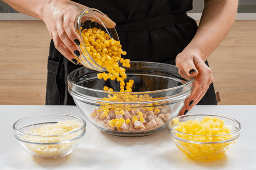 - Консервированная кукуруза: 250 г