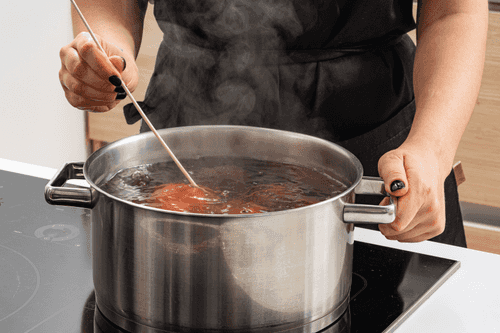 Свеклу, картофель и морковь отварить, не очищая кожуры. Сначала будет готова морковь (через 20 минут), потом картофель (30–35 минут), на варку свеклы уйдет не меньше 1 часа. Готовность можно проверить шпажкой или ножом: он должен легко входить в мякоть. Дать овощам остыть, пока подготавливаются другие ингредиенты.