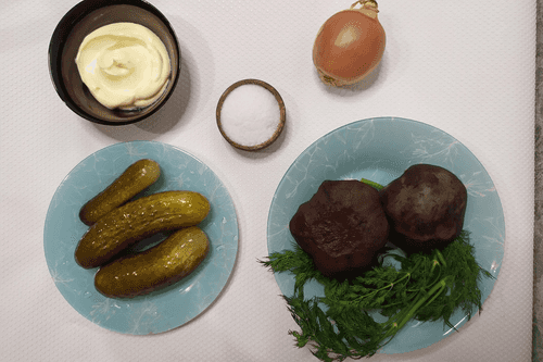 Подготовить ингредиенты. Свеклу предварительно отварить или запечь.