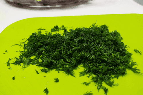 Мелко порубить укроп.