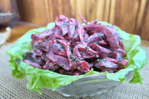 Салат из свеклы и маринованных огурчиков — это простое, но изысканное блюдо европейской кухни, наполненное яркими вкусами и приятной текстурой. Считается, что корни этого рецепта уходят в традиционные домашние кухни стран Восточной Европы, где свекла и маринованные овощи были популярными ингредиентами. Сладость запеченной или вареной свеклы гармонично сочетается с пикантностью маринованных огурчиков и легкой остротой лука. Укроп добавляет свежие травяные нотки, а майонез придает мягкость и связывает компоненты воедино. Такой салат идеально подходит как самостоятельная закуска или гарнир к мясным и рыбным блюдам. Он не только радует вкусовые рецепторы, но и отличается эстетикой – насыщенный бордовый цвет свеклы делает его привлекательным на праздничном столе.