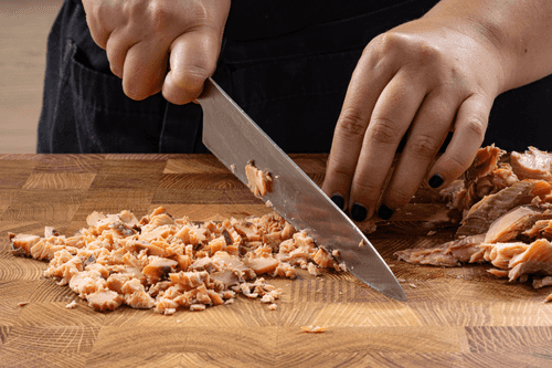 Горбушу очистить от костей и мелко нарезать.