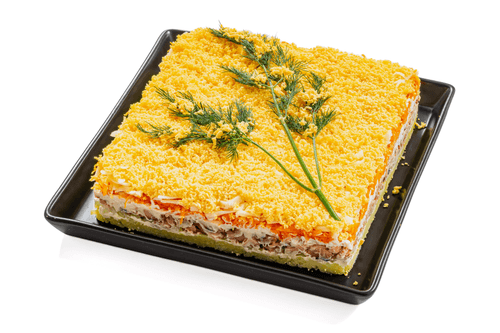 Салат «Мимоза» с сыром – элегантное блюдо русской кухни, которое очаровывает нежностью текстуры и гармоничным вкусом. Названный в честь яркого весеннего цветка, он радует глаз своим воздушным слоистым оформлением, а мягкий сырный оттенок добавляет глубины вкусу. Классическая «Мимоза» известна с советских времён как символ праздничного застолья. В этом варианте солёная горбуша, отварной картофель, сладкая морковь, пикантный лук и воздушные белки создают идеальный баланс, а сыр придаёт особую сливочность. Завершающий штрих – рассыпчатый яичный желток, словно цветущая мимоза. Это блюдо не только радует вкус, но и вызывает ностальгию по домашним праздникам. Перед подачей ему нужно дать настояться, чтобы раскрылись все оттенки его вкусовой палитры.