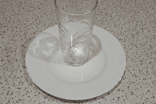 В центр тарелки поставить стакан.