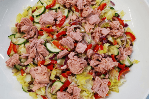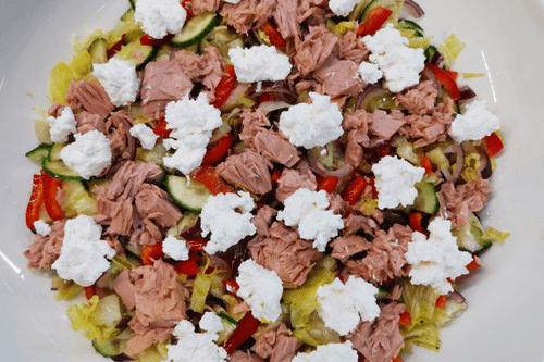Греческий салат с тунцом – это утонченное сочетание свежих овощей, нежного тунца и сливочного сыра фета, создающее гармонию вкусов и текстур. Его корни уходят в средиземноморскую кухню, известную своей простотой и пользой для здоровья. Хрустящий айсберг, сладковатый перец рамиро, освежающий огурец и пикантный красный лук дарят яркость и свежесть, а тунец добавляет сытности. Оливковое масло extra virgin придает блюду благородный аромат, а маслины завершают композицию, добавляя легкую солоноватую ноту. Греческий салат с тунцом – идеальный выбор для легкого ужина или обеда, он легко усваивается и наполняет энергией. Его можно подавать как самостоятельное блюдо или как дополнение к основному приему пищи, наслаждаясь его насыщенным средиземноморским вкусом.