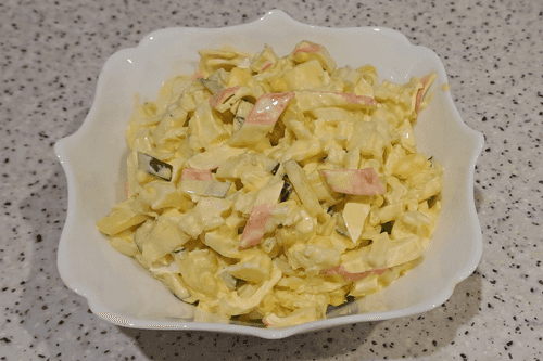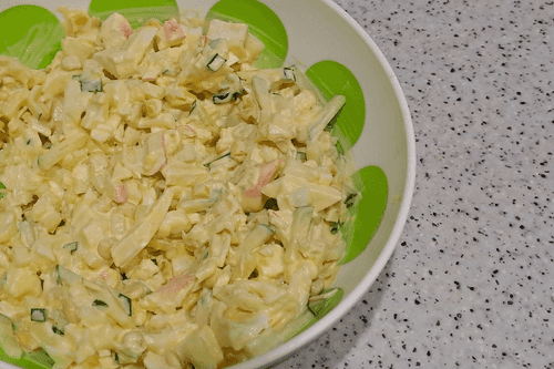Крабовый салат без риса – это нежное и освежающее блюдо, ставшее популярным благодаря своей легкости и богатому вкусовому балансу. Этот рецепт напоминает классический крабовый салат, но без утяжеляющего компонента – риса, что делает его воздушным и свежим. Истоки такого варианта блюда можно отнести к современной европейской кухне, которая стремится к гармонии вкуса и простоте приготовления. Хрустящая пекинская капуста и сочный огурец добавляют свежести, а сладковатая консервированная кукуруза смягчает вкус крабовых палочек. Вареные яйца придают салату нежность, а майонез объединяет все ингредиенты в единую, сбалансированную композицию. Блюдо подают охлажденным, оно прекрасно подходит как для повседневных ужинов, так и для праздничного стола, радуя гостей своим легким и изысканным вкусом.