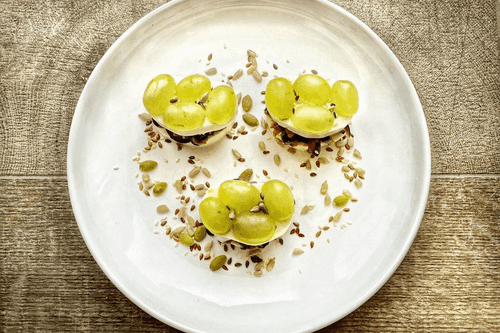 Салат с мидиями, сыром и виноградом — изысканное сочетание морепродуктов, молочных нот и сладкой свежести. Этот рецепт объединяет контрасты: нежность мидий, кремовый вкус моцареллы и сочная сладость винограда. Заправленный греческим йогуртом, он приобретает легкость, а семена льна и тыквенные семечки добавляют хрустящую текстуру. Терияки и розмарин привносят пикантные акценты, делая вкус более глубоким. Возможно, этот салат вдохновлён стремлением русской кухни интегрировать изысканные ингредиенты в простые, но утончённые блюда. Он идеально подходит для праздничного ужина или романтического вечера, подчёркивая гастрономическую элегантность. Наслаждайтесь этим блюдом в сочетании с белым вином, которое подчеркнёт его многогранные вкусовые оттенки.
