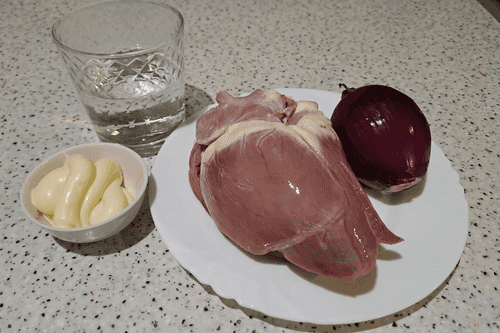 С сердца удалить жир и все лишнее. Нарезать тонкой соломкой.