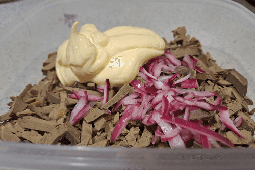Салат из говяжьей печени с маринованным луком