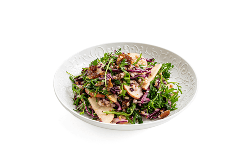 Постный салат из полбы с яблоком и красной капустой