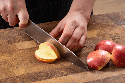 Нарезать яблоко тонкими ломтиками, удалив сердцевину.
