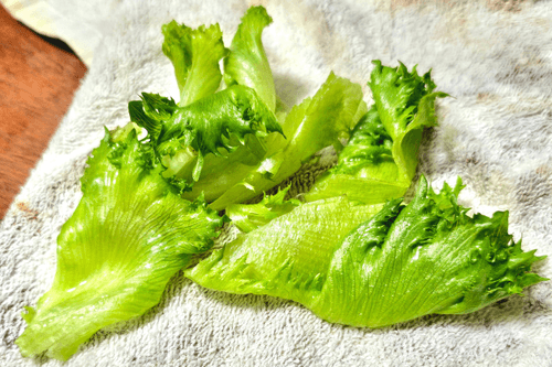 Листья салата промыть и обсушить.