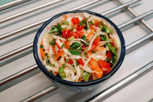 Салат с квашеной капустой — это необычное сочетание свежести и пикантности, вдохновленное гастрономическими традициями ферментированных продуктов. Квашеная капуста придает блюду приятную кислинку, которая гармонично сочетается с хрустящим перцем рамиро, нежной руколой и шпинатом. Маринованный и свежий чеснок добавляют глубину вкуса, а каперсы привносят изысканный солоновато-пряный акцент. Этот салат идеально подходит как самостоятельное блюдо или в качестве дополнения к мясным и рыбным кушаньям. Его можно подать на праздничный стол или использовать как легкую закуску, насыщенную витаминами и полезными бактериями для пищеварения. Ароматный, свежий и сбалансированный — он станет отличным выбором для любителей оригинальных сочетаний и здоровой кухни.