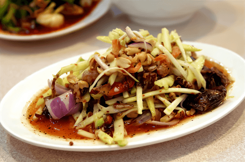 Крабовый салат с зеленым манго и кокосом — это яркое сочетание свежести и экзотических ароматов, воплощение тайской кухни. Истоки рецепта лежат в традициях юго-восточной Азии, где морепродукты часто сочетают с кисло-сладкими фруктами и пряными травами. Нежное мясо краба гармонично переплетается с сочным зеленым манго, а кокосовая стружка добавляет тонкую ореховую ноту. Заправка с рыбным соусом, соком лайма и коричневым сахаром подчеркивает богатство вкусовых оттенков, создавая баланс между сладостью, кислостью и пикантностью. Хрустящий арахис придает текстурную контрастность, а листья мяты и кинзы дарят свежесть. Блюдо идеально подходит для легкого ужина или изысканной закуски, особенно если подать его в листьях банана, что добавляет аутентичности. Это салат, который пробуждает чувства и приглашает в кулинарное путешествие по Таиланду.