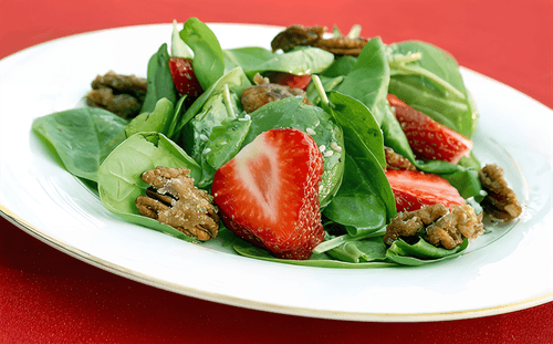 Шпинат с клубникой и орехами
