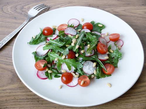Руккола с редисом и помидорами