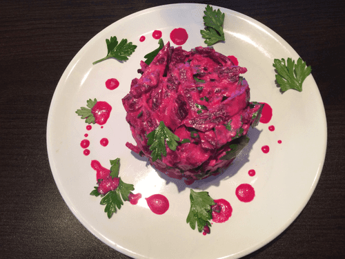 Салат из свеклы с рикоттой — изысканное блюдо итальянской кухни, которое восхищает своей простотой и гармоничным сочетанием вкусов. Этот салат, вдохновленный традиционными средиземноморскими рецептами, объединяет сладковатую свеклу, мягкость рикотты и свежесть цитрусового соуса. Апельсиновый и лимонный сок добавляют тонкую кислинку, подчеркивая естественную сладость свеклы, а петрушка и красный лук привносят пикантные нотки. Оливковое масло связывает ингредиенты, делая салат насыщенным и сбалансированным. Такой салат отлично подходит как легкое блюдо для летнего ужина или элегантная закуска перед основным приемом пищи. Его можно подавать самостоятельно или как гарнир к рыбе или курице. Вкус свежий, освежающий и одновременно насыщенный — настоящая итальянская гастрономическая магия в каждой вилке.