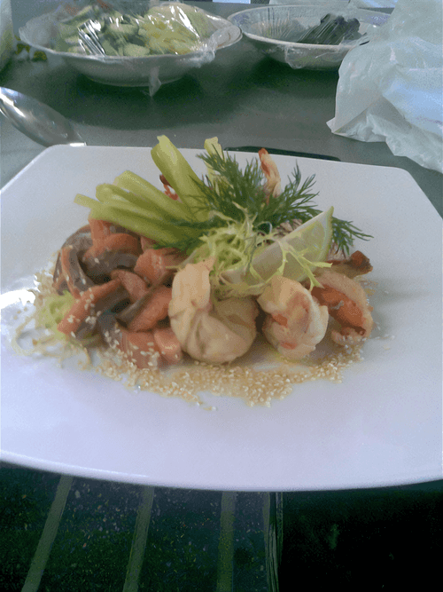 Салат из тигровых креветок и семги