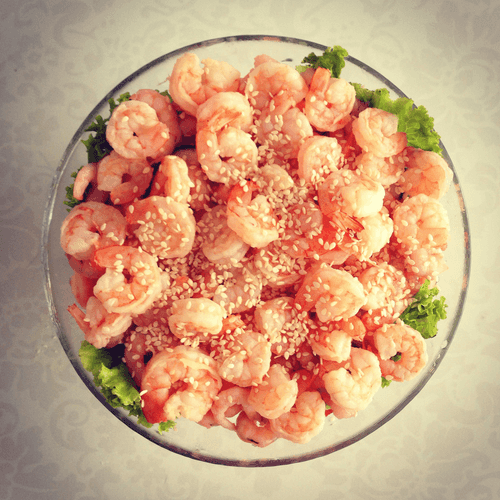 Салат с креветками и кунжутом прост и лаконичен, поскольку эти морепродукты сами по себе не нуждаются в лишнем сопровождении. Майонез в салате можно заменить на натуральный йогурт или оливковое масло, смешанное с лимонным соком. А дополнить блюдо — крупно нарезанным авокадо и тертым пармезаном. Сами креветки можно приготовить тремя путями: отварить, запечь или поджарить. Главное, не делать это долгое время. При каждой из этих обработок вкус креветок будет меняться по-разному, но менее привлекательным от этого не станет.