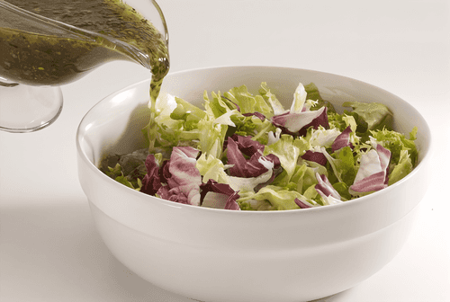 В миску выложите листья от одной головки. Посыпьте щепоткой соли и перца, небольшим количеством измельченного шалота и шнитт-лука и по 1 столовой ложке петрушки, эстрагона и кервеля. Затем перемешайте с 1 столовой ложкой домашнего винегрета и 1 чайной ложкой лимонного сока. Повторите тоже самое с оставшимися листьями.