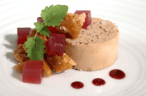 Салат из гусиной печени с ежевичным соусом