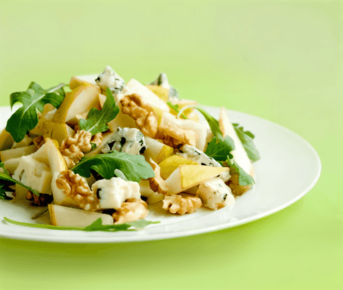 Салат из груш, рукколы, рикотты и панчетты