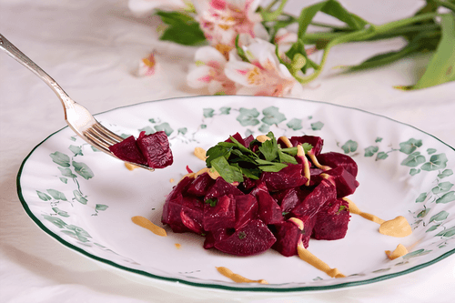 Салат свекольный – это яркое и ароматное блюдо литовской кухни, пропитанное традициями Балтийского региона. Основной ингредиент – свекла – придает салату насыщенный сладковатый вкус, который великолепно дополняется пряным хреном, нежной сметаной и свежей мятой. Добавленный бальзамический уксус оттеняет сладость свеклы, создавая изысканный баланс вкусов. Этот салат не только радует глаз своим насыщенным рубиновым цветом, но и приносит пользу организму благодаря богатому содержанию витаминов и антиоксидантов. В Литве его подают как самостоятельное блюдо или как дополнение к мясу и рыбе. Аромат корицы добавляет нежное пряное послевкусие, делая салат идеальным сочетанием сладкого и пикантного. Легкий и освежающий, он отлично подходит как для повседневного рациона, так и для праздничного стола.