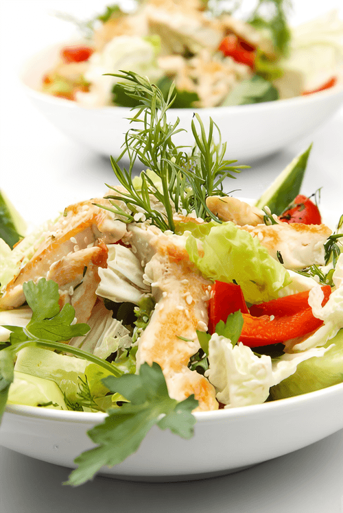 Салат из курицы с цикорием, помидорами-черри, сыром и грецкими орехами – элегантное блюдо французской кухни, сочетающее в себе нежность, хрусткость и насыщенный вкус. Легкий горьковатый оттенок цикория прекрасно гармонирует со сладостью томатов, мягкостью курицы и пикантностью грецких орехов. Заправка на основе винного уксуса и масла грецкого ореха обогащает вкус утонченными ароматами, а эстрагон придает свежий пряный акцент. Этот салат – идеальный выбор для легкого обеда или романтического ужина, баланса между простотой и изысканностью. Исторически французские повара славились своим мастерством в сочетании текстур и вкусов, и этот салат – яркое тому подтверждение. Подача его охлажденным усиливает вкусовые нюансы, делая каждую вилку настоящим гастрономическим удовольствием.