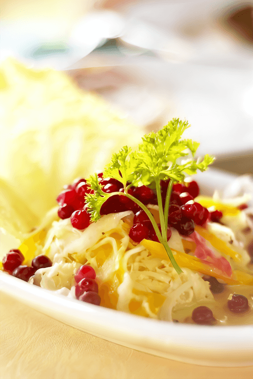 Салат из капусты с орехами, клюквой и крыжовником и тмином
