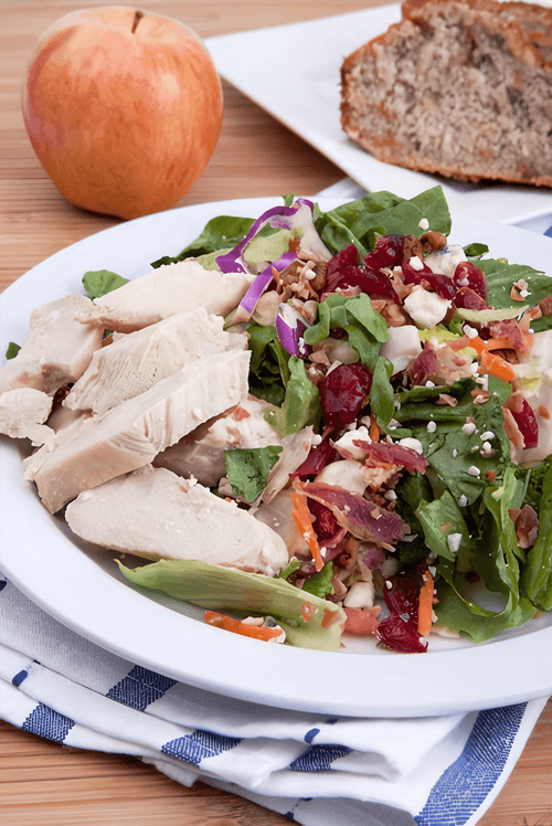 Теплый салат с курицей и грибами