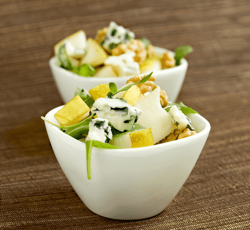 Куриный салат с горгонзолой, печеной грушей и грецкими орехами