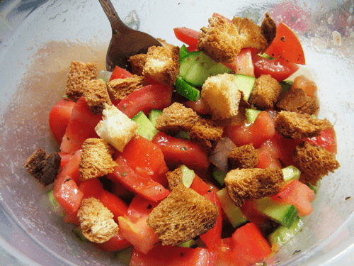 Овощной салат с гренками и уксусной заправкой