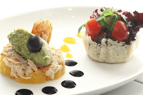 Крабовый салат с йогуртовой заправкой — это изысканное блюдо итальянской кухни, сочетающее морскую свежесть и легкость вкуса. Нежное мясо краба и тигровые креветки, обжаренные в оливковом масле, создают утонченную текстуру. Йогуртовый соус подчеркивает их натуральный вкус, а авокадо с каплей Табаско добавляет пикантности. Яркие апельсиновые сегменты дарят нотку свежести, а маслина и целая креветка завершают композицию изысканной элегантностью. Подача в корзинке из пармезана с миксом салатных листьев и помидорами черри превращает блюдо в настоящий кулинарный шедевр. Этот салат станет идеальным выбором для легкого ужина или праздничного застолья, даря гастрономическое удовольствие и визуальную красоту.