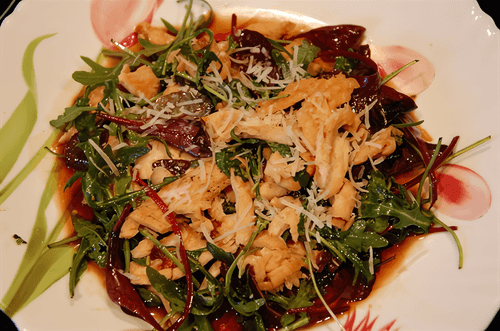 Салат с теплым лососем – это изысканное блюдо европейской кухни, которое гармонично сочетает насыщенный вкус свежего лосося с пикантными нотами соевого соуса и имбиря. Лосось, обжаренный на кунжутном масле, приобретает аппетитную золотистую корочку и нежную текстуру. Он выкладывается на хрустящие листья руколы, придавая салату свежесть и легкую горчинку. Соус, основанный на соевом соусе, лимонном соке и имбире, подчеркивает вкусовые оттенки блюда, придавая ему легкую азиатскую нотку. Этот салат идеально подходит как для изысканного ужина, так и для легкого обеда, даря наслаждение своим утонченным вкусом и полезными свойствами.
