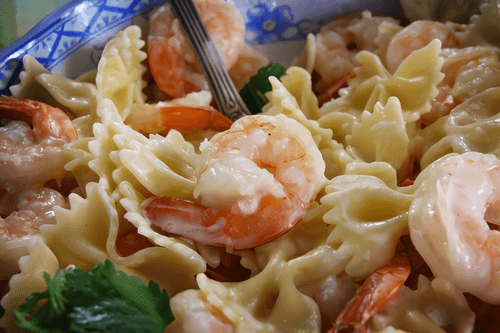 Салат из пасты, креветок и базилика – это гармоничное сочетание свежести морепродуктов, ароматных трав и нежной текстуры пасты. Этот рецепт вдохновлен средиземноморской кухней, где креветки и базилик играют ключевые роли, придавая блюду тонкий сладковатый вкус с легкой пикантностью. Лимонная цедра и красный перец хлопьями добавляют тонкую цитрусовую ноту и приятное согревающее послевкусие. Такой салат идеален для летнего ужина или легкого обеда, его можно подать как самостоятельное блюдо или дополнение к основному меню. Сочетание оливкового масла extra virgin с лимонным соком делает заправку легкой и освежающей, а паста фарфалле прекрасно удерживает ароматные ингредиенты, позволяя раскрыться вкусовым оттенкам в каждом укусе.