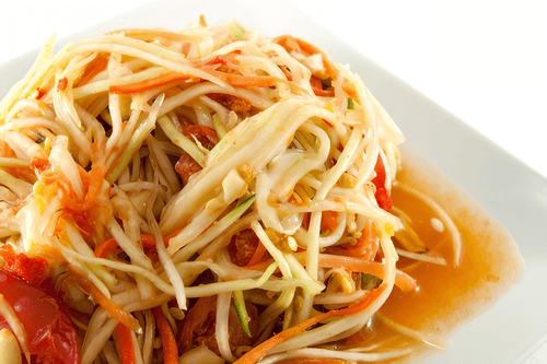 Легкий салат из зеленой папайи и сладкого лука с лаймовой заправкой