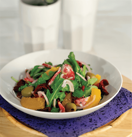 Этот салат из рукколы с оливками, вялеными томатами и салями — яркий представитель греческой кухни, воплощающий средиземноморские традиции. Он сочетает нежную пряность рукколы, сладковато-кислый вкус вяленых томатов, пикантность салями и солоноватые нотки оливок. Заправка на основе оливкового масла, меда и винного уксуса добавляет глубины вкусу, превращая каждую вилку в гастрономическое наслаждение. Такой салат идеально дополняет мясные и рыбные блюда, а также хорош сам по себе как легкая закуска. Его свежий и сбалансированный вкус делает его идеальным выбором для летнего ужина или праздничного стола.