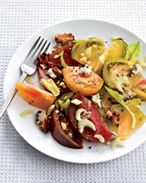Этот салат из помидоров, голубого сыра и грецких орехов—истинное воплощение итальянской гастрономической элегантности. Его корни уходят в средиземноморскую традицию, где свежие овощи, сыр и орехи создают гармонию вкусов. Томаты, спелые и сочные, дарят свежесть, голубой сыр добавляет пикантную кремовую нотку, а грецкие орехи придают хрустящую текстуру. Заправка на основе бальзамического уксуса, дижонской горчицы и оливкового масла обогащает блюдо глубиной вкуса. Этот салат идеально сочетается с легкими белыми винами и подается как изысканная закуска или свежий гарнир. Простота приготовления делает его отличным выбором для повседневного ужина или романтического вечера, а его насыщенный вкус способен поразить даже самых взыскательных гурманов.