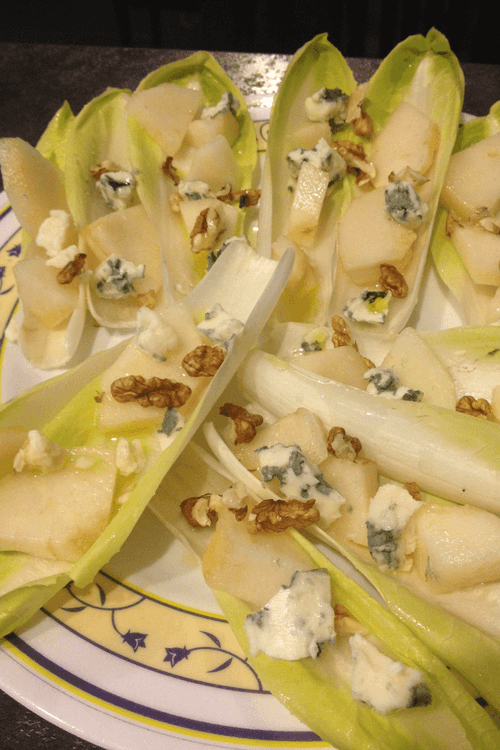 Салат с рокфором, грушами, цикорием и маслом грецкого ореха