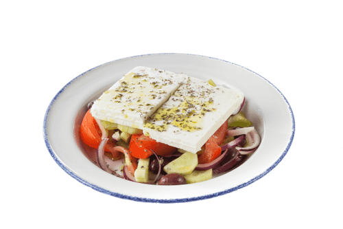 Основным компонентом салата хориатики является фета, классический греческий сыр, изготовленный из овечьего или козьего молока. Этот сыр обладает текстурой, схожей с плотным творогом, а его вкус отличается лёгкой и ненавязчивой кислинкой. В отличие от более солёной и резкой брынзы, которую часто используют в этом салате в других странах, фета не заглушает ароматы свежих овощей, оливок и оливкового масла.