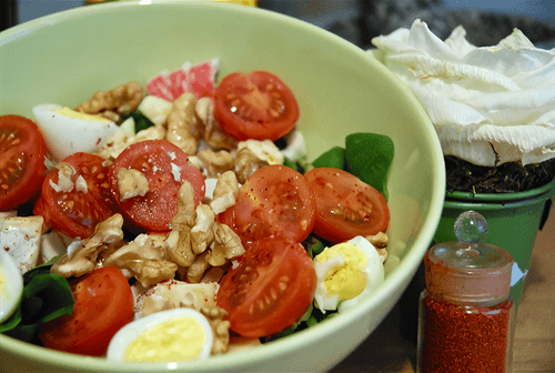 Шпинатный салат с грецкими орехами – это свежий и изысканный ансамбль вкусов, который идеально подходит для легкого ужина или праздничного стола. Основу составляет нежный шпинат, обогащенный сливочными нотками сыра камамбер и сладостью крабовых палочек. Яркие половинки томатов черри добавляют свежесть, а перепелиные яйца придают блюду завершенность. Хрустящие грецкие орехи придают тонкую ореховую нотку, создавая гармоничный баланс текстур. Оливковое масло и молотый красный перец деликатно подчеркивают вкус ингредиентов, превращая этот салат в настоящее гастрономическое удовольствие. Легкий, но насыщенный, он прекрасно сочетается с белыми винами и отлично подходит как самостоятельное блюдо или дополнение к мясу и рыбе.