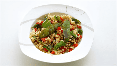 Салат из булгура с корном и молодым горошком — это свежий и питательный пример европейской кухни, который сочетает в себе нежность молодого горошка, легкую сладость красного перца и насыщенный ореховый вкус булгура. Булгур, являющийся древним злаком, широко используется в средиземноморских и восточных блюдах, а в этом рецепте он становится основой для легкого, но сытного салата. Заправка на основе бальзамического уксуса, оливкового масла и горчицы добавляет пикантности и глубины вкуса, подчеркивая естественную свежесть овощей. Такой салат прекрасно подходит как самостоятельное блюдо для легкого ужина или как гарнир к рыбным и мясным блюдам. Идеальное сочетание текстур и вкусов делает его не только вкусным, но и полезным выбором для ценителей здорового питания.