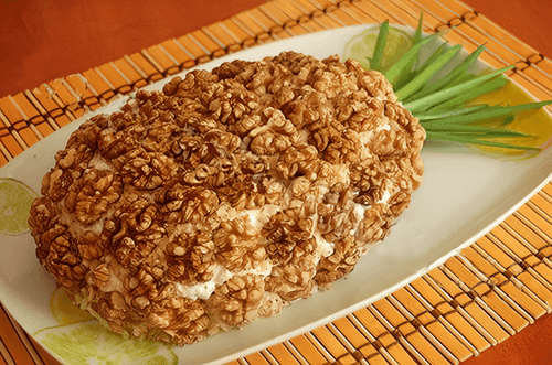 Салат из куриного окорока с грецкими орехами и сыром
