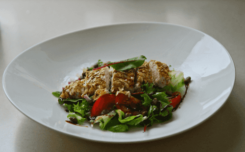 Салат с куриной грудкой и апельсиново-медовой заправкой
